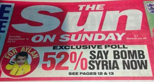 Recently, the sympathetic tone from the right-wing press changed again, with The Sun once more at the fore, headlining its campaign with “Bomb Syria for Alan.” The fact that five billionaires own over 70% of the U.K. corporate press may help explain the current war-mongering: their interests, after all, overlap those of the military industrial complex, big banks and big oil. For example, Murdoch has oil investments in Israeli-controlled Golan Heights in Syria.